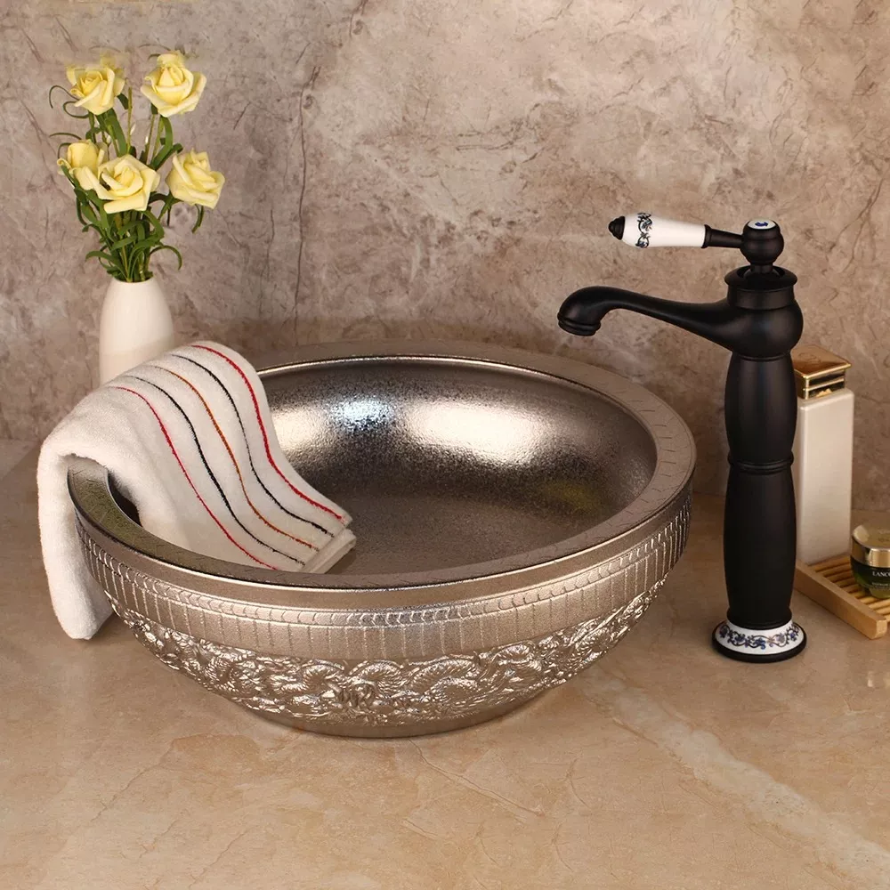 With its graceful blend of artisan craftsmanship and modern design, this silver ceramic bathroom sink set brings a touch of luxury to your daily routine. Whether you’re refreshing your bathroom style or completing a full renovation, this sink and faucet set is an ideal choice. The unique hand-painted detailing on the bowl and the elegant, oil-rubbed black faucet make it a standout piece that combines beauty and practicality.